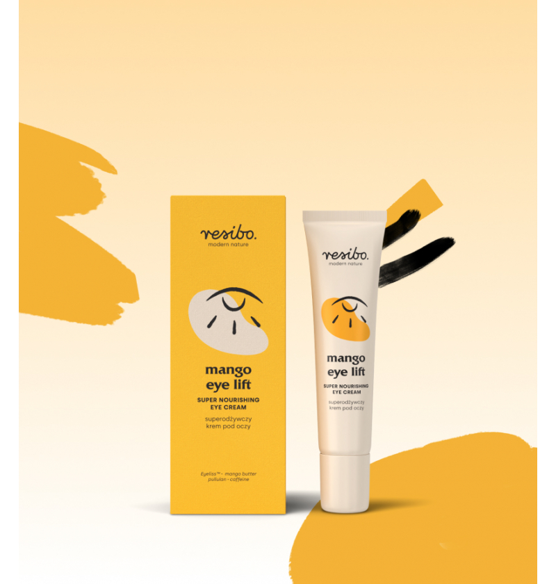 La crema super nutriente Mango Eye Lift idrata profondamente, nutre ed illumina notevolmente la pelle sotto gli occhi, migliorandone l'aspetto. Riduce il gonfiore e dona un effetto tensore, riducendo la comparsa delle rughe. Il complesso Eyeliss™ contenuto nella crema è una combinazione di 3 molecole attive, la cui sinergia agisce come trattamento globale per la cura della zona perioculare: migliora la barriera protettiva della pelle, aumenta la circolazione linfatica, dona elasticità e compattezza ed aiuta a ridurre infiammazioni e gonfiori. Eyeliss™ è supportato dall'ingrediente Fucocert, che ha proprietà lenitive, idratanti ed antietà. La caffeina inoltre, leviga e rassoda la pelle, mentre il Pullulan (polisaccaride naturale ) fornisce un effetto lifting.