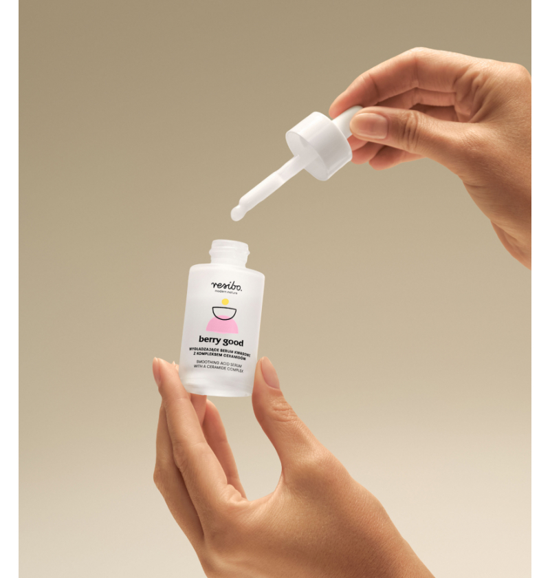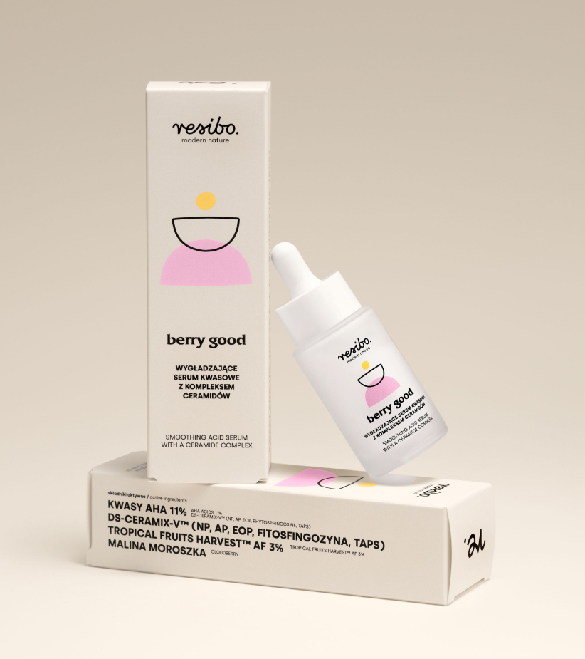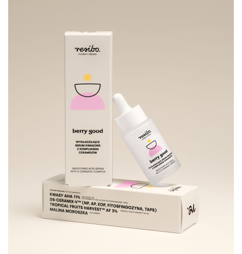 Berry Good è la risposta alla pelle stanca e dal colorito spento, che necessita levigatezza e luminosità. Gli acidi AHA (lattico e mandelico) contenuti all'11% rimuovono le cellule morte, levigano la grana della pelle e le consentono di assorbire meglio i principi attivi. L'ingrediente più importante della formula è il complesso DS-CERAmix-V™ (tre ceramidi: NP, AP, EOP, fitosfingosina e TAPS), che favorisce il ripristino della barriera protettiva cutanea. Inoltre, il lampone nordico, ricco di antiossidanti, illumina la pelle e la aiuta a combattere i segni dell'invecchiamento e dello stress ossidativo.